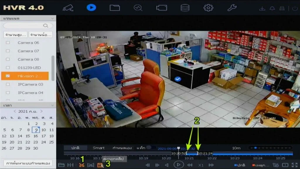 2.เลื่อนช่วงเวลาที่ต้องการ (หากเหตุการณ์ในคลิปยาว ให้ช่วงเวลาสั้นๆ แบ่งเป็นหลายๆคลิป โดยการวนกลับมาทพซ้ำหัวข้อนี้)