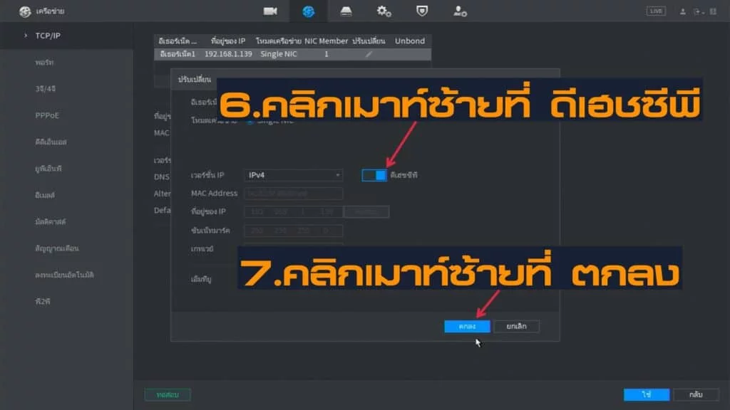 6.กดคลิกเมาส์ซ้ายที่ ดีเฮชซีพี (DHCP) เพื่อรับไอพีอัตโนมัติจากเราท์เตอร์