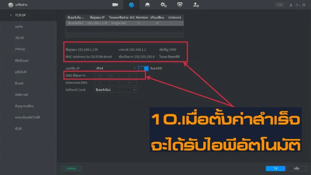 10.เมื่อตั้งค่าสำเร็จจะได้รับไอพีอัตโนมัติ